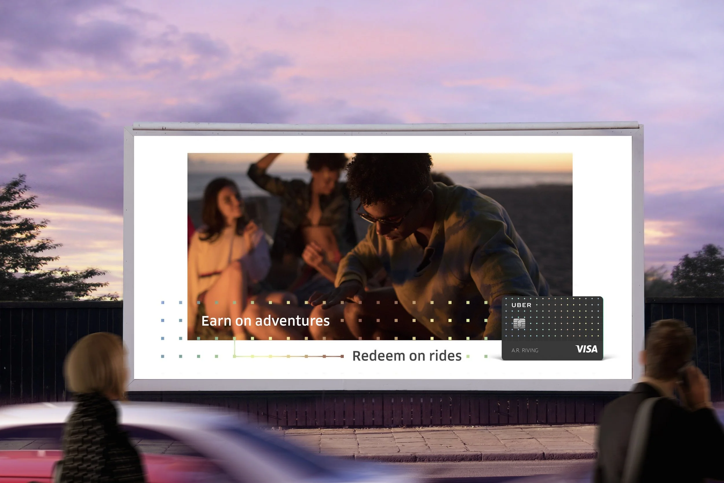 When launching the Uber Visa Card, we didn't want to just create a typical credit card. We wanted to create a best in class card that was designed for riders, earning them points on the things they do so they could redeem them on the things they love. When launching a first of it’s kind card, we couldn’t just do something typical. We needed to gain attention in a crowded market, in a way that’s uniquely Uber, and pays off the cards main benefit.
